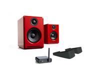 Audioengine A2 plus Limited Edition Premium Powered Desktop Speakers Package - Red With B1 Bluetooth Music Receiver and DS1 Desktop Speaker Stands